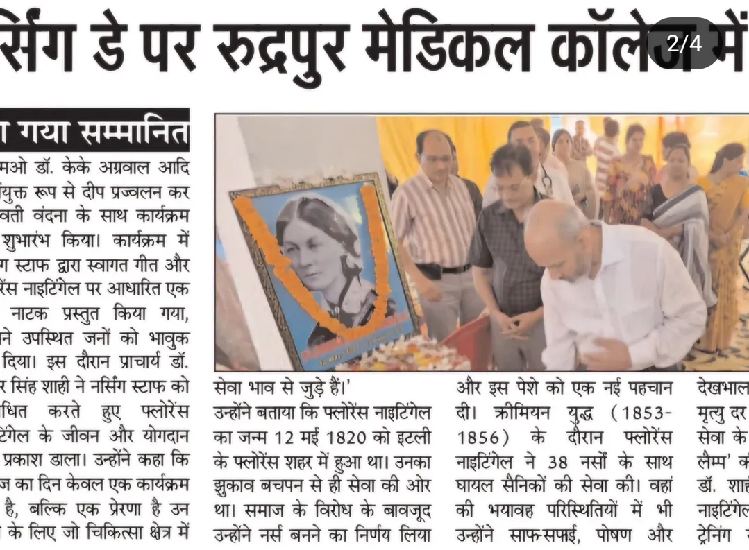 राजकीय मेडिकल कॉलेज रुद्रपुर में अंतर्राष्ट्रीय नर्सेज डे धूम धाम से मनाया गया